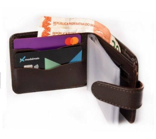 Sinta a fusão perfeita entre estilo atemporal e funcionalidade moderna. Eleve sua experiência de carregar seus pertences diários com a nossa carteira com abotoadeira em couro legítimo.